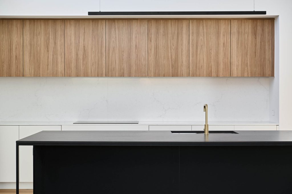 - Stone benchtops made of high-quality materials