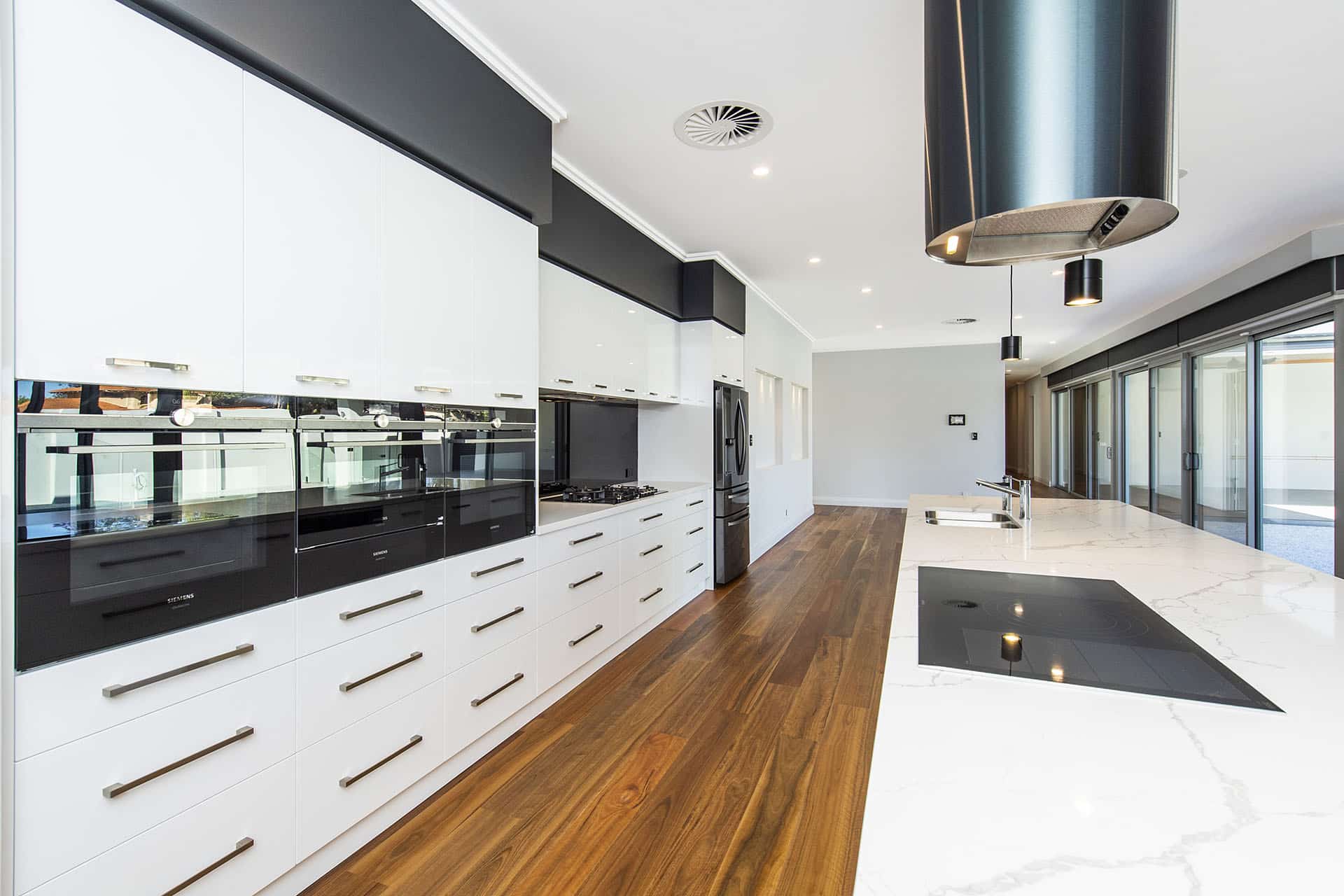 Located in the Perth suburb of Applecross, this single storey entertainer’s dream home is built on a huge 1,000m2 corner block surrounded by rendered brick walls and slatted panels.