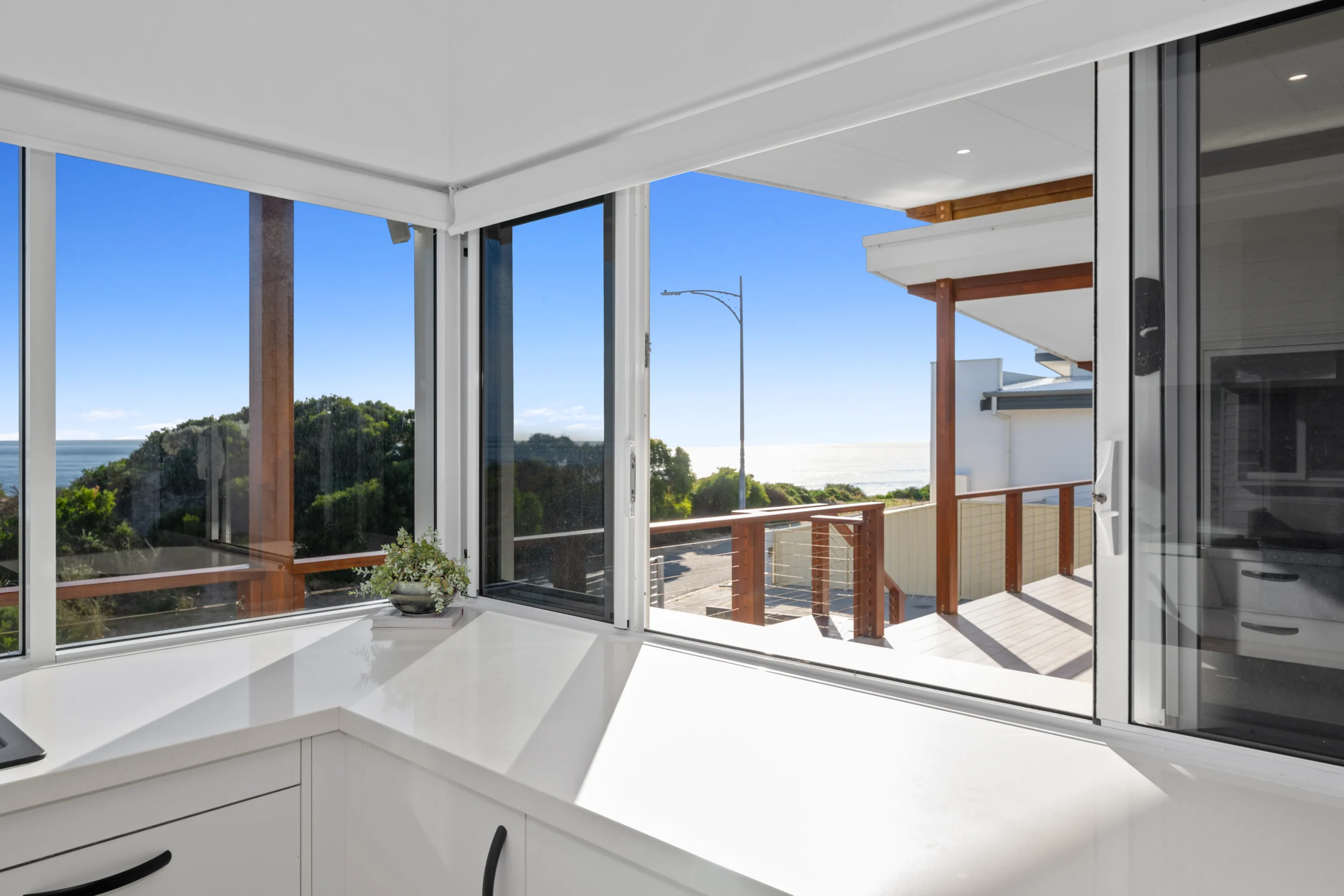 This is a single-story home with full height glazing for seamless ocean views and incredible sunset. Space has been maximised by high ceiling throughout for a real sense of space. To complete the design is a balcony with tiled floors & glass balustrade.