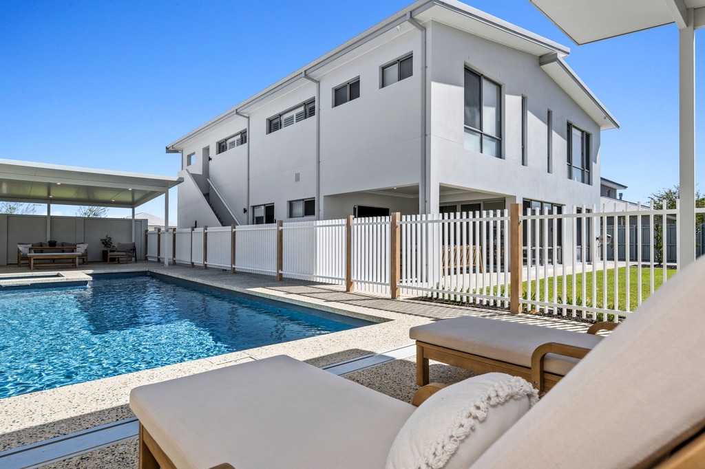 A gloriously designed two storey three bedroom home with outstanding features inside and out. At the centre of this new build is a large kitchen with a scullery. The family will enjoy the stunning views with an upstairs living area, along with an office and a games room. To top off the design there is a huge master suite with his & hers dressing rooms.