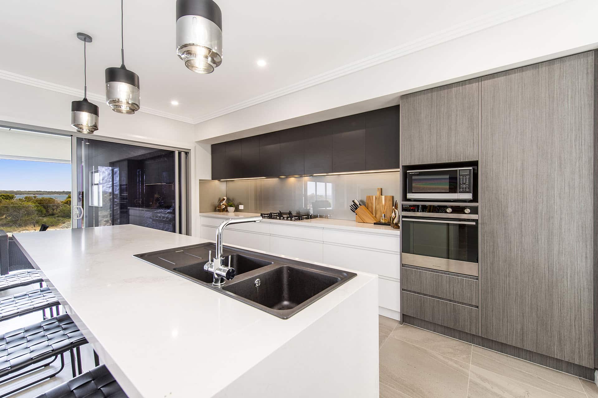 Proving that as experienced Mandurah home builders, D.A. Burke is able to turn our hands to any home building project is this stunning new modern home on the water in Wannanup (just south of Mandurah). From the ground up, top-quality materials and excellent craftsmanship have provided a residence that the owners can be extremely proud of.
