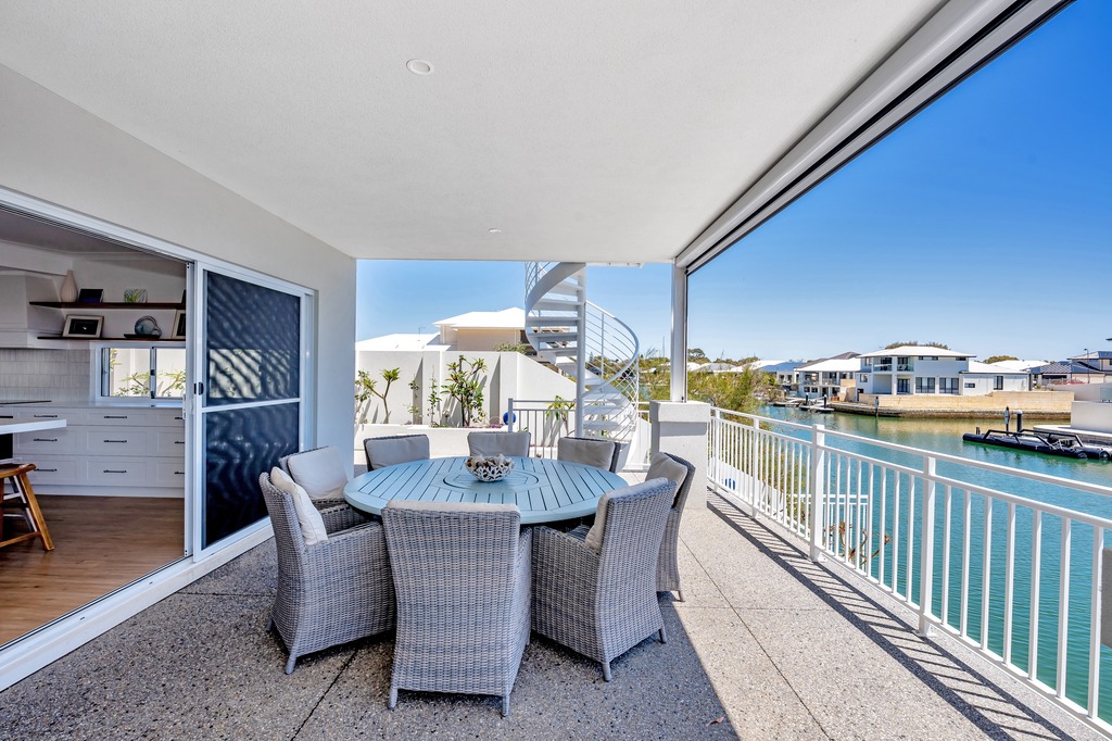 • Wannanup canal home exterior with modern architecture and outdoor seating area